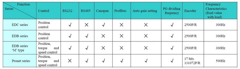 ESTUN drives sizes and groups are available in order to support any possible system configuration. The selection of ESTUN Servos can start in principle on the base of the communication prococol as shown in the following table. Some Test Benches are available at ATEC Robotics laboratories for system verification. In case of frequent start/stop motions (i.e.packing or textile), motors and drives are provided with special treatments to let them suitable.